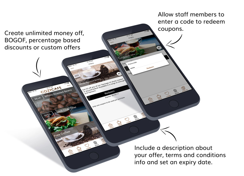 Create your offer – % discount, BOGOF, Customer offer on the APP