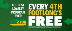 Loyalty on APP card for a FREE Footlong. Present APP Lotyalty Card in store
